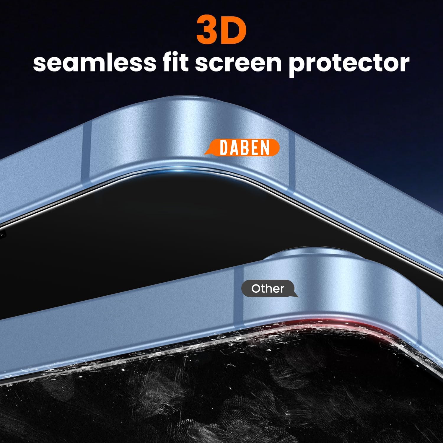 - 【Invisible Protection, 1:1 Full Covers the iPhone's Screen】Simulating iPhone's screen design, DABEN envelops the screen's every curve with a reinforced 1:1 3D curved black edge, getting the most vulnerable screen edge fully covered. Also, it is visually invisible as it blends seamlessly with the iPhone 13 Pro Max / iPhone 14 Plus screen.
